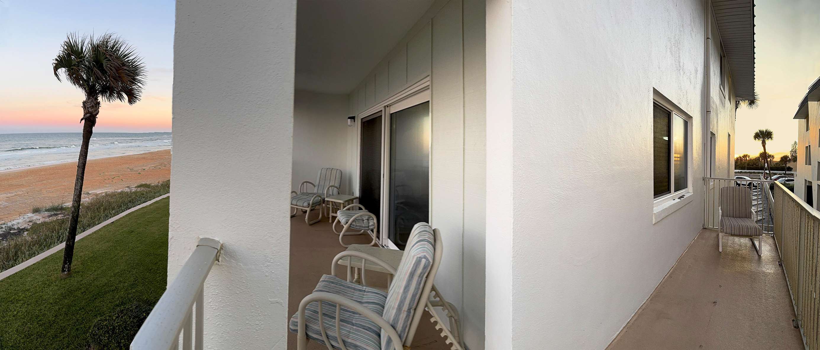 Oceanfront balcony with stunning sunset and beach views