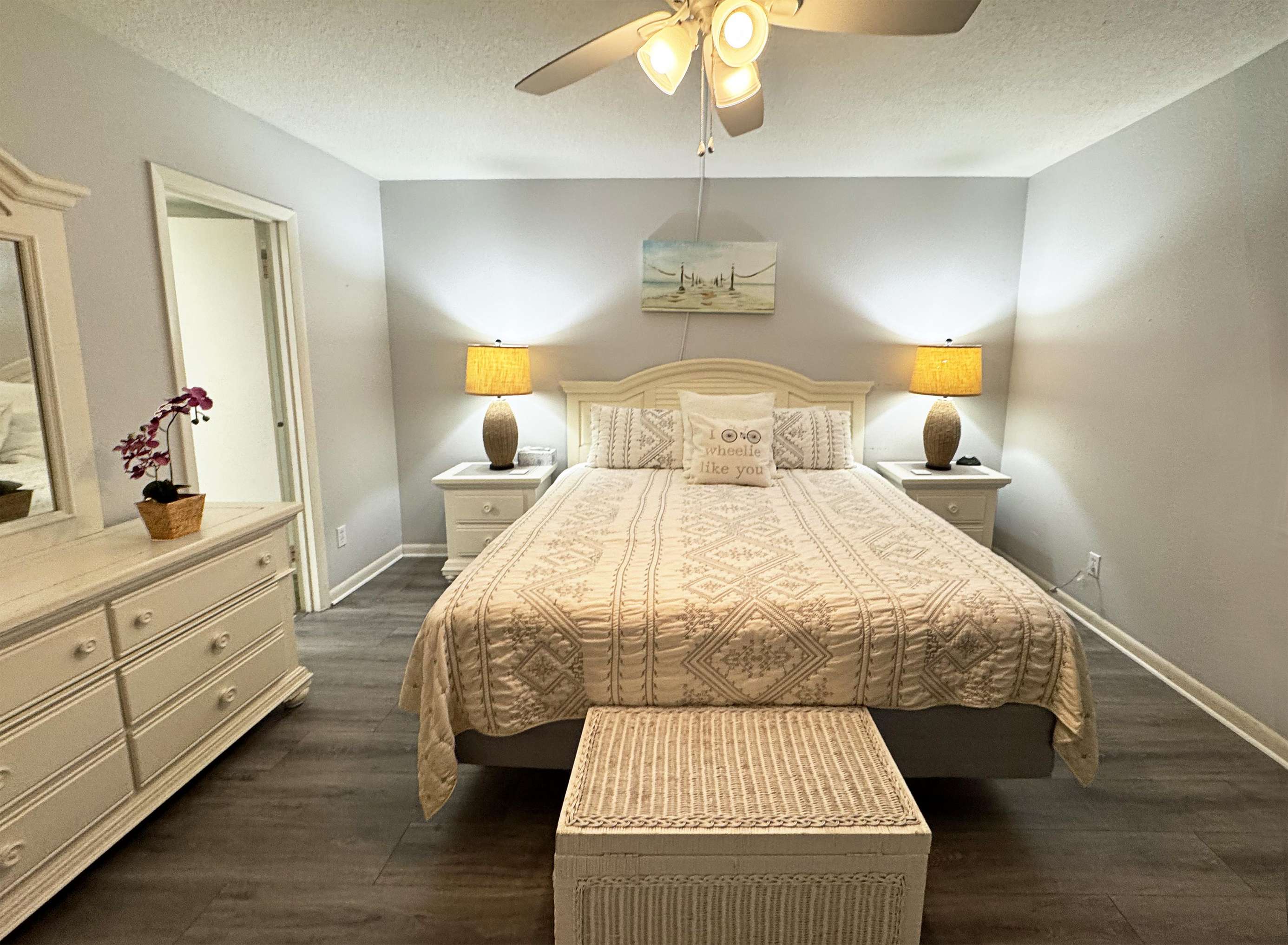 Cozy bedroom retreat with soft lighting and ample storage