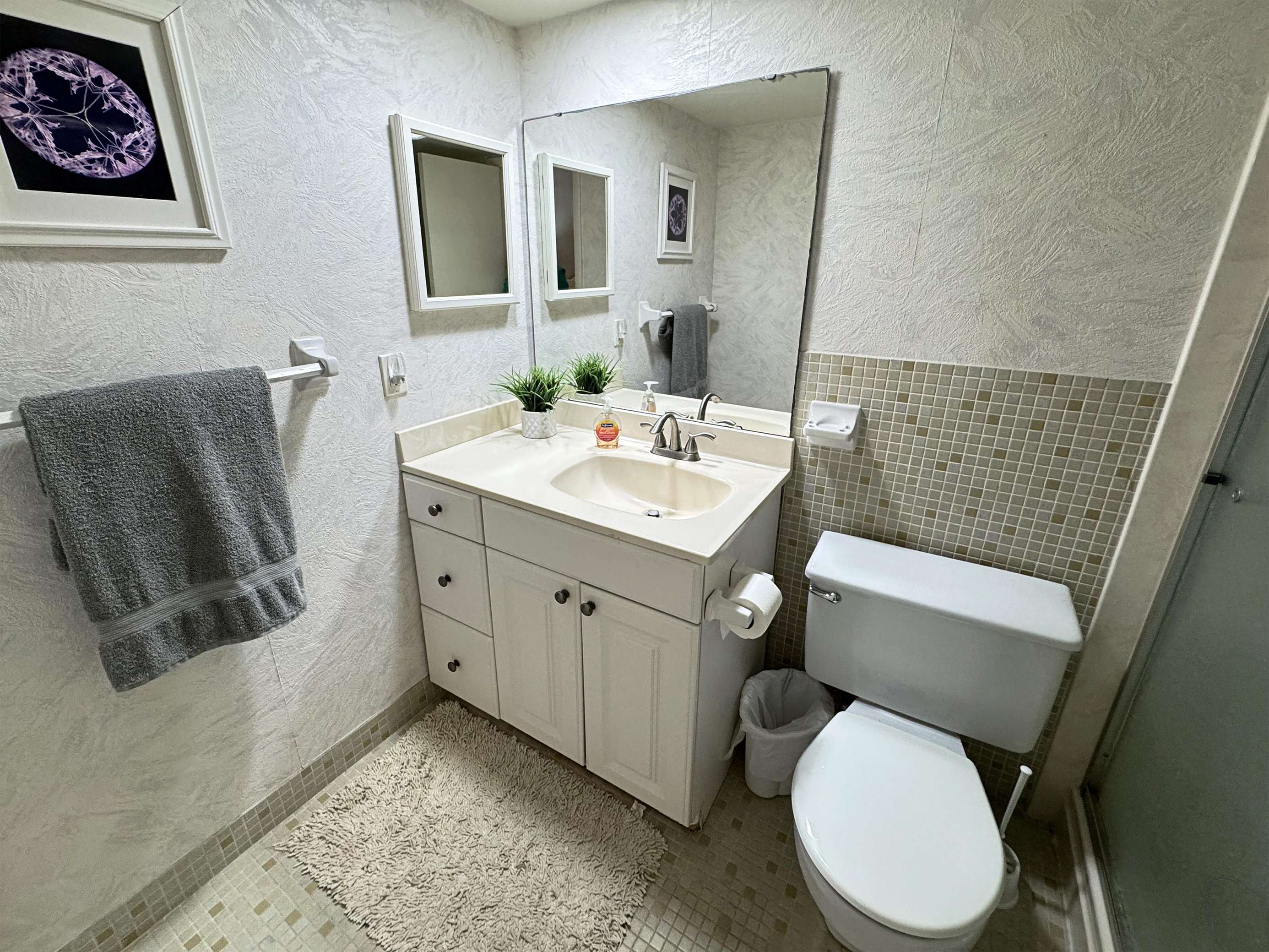 Bright and clean bathroom with modern fixtures and ample storage