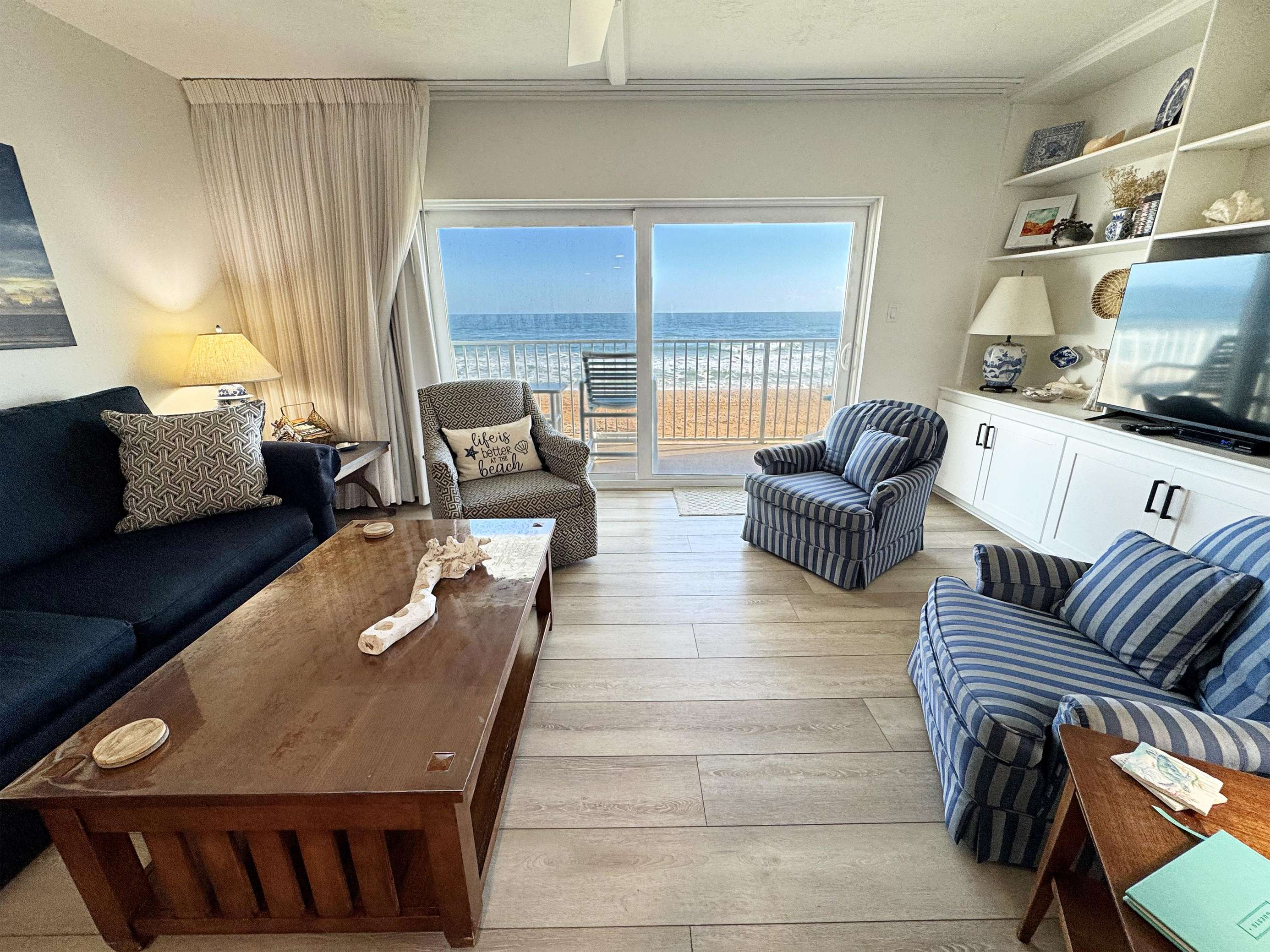 Newly remodeled two-bedroom unit with direct ocean views to give you memories to last forever.