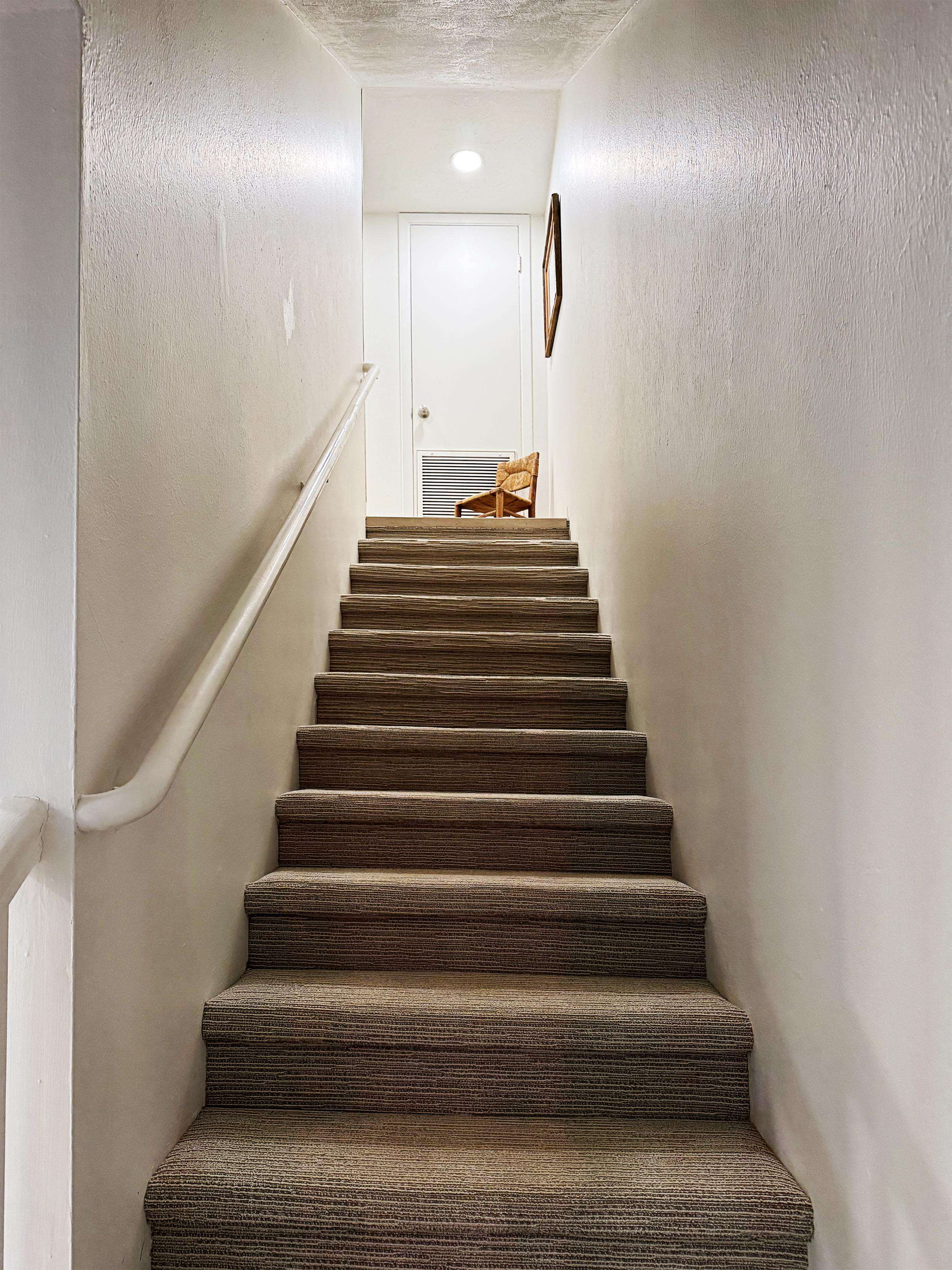 Bright, spacious staircase leading to your cozy retreat