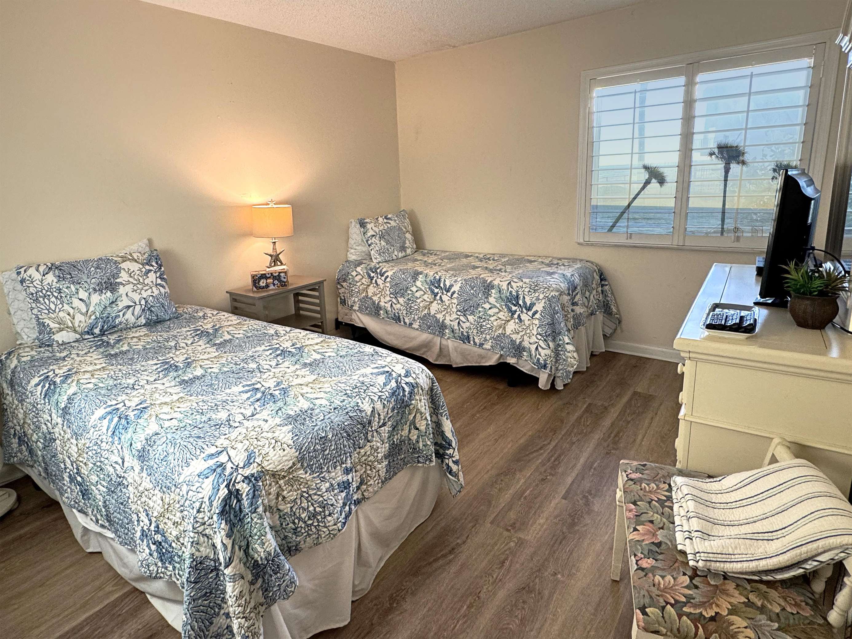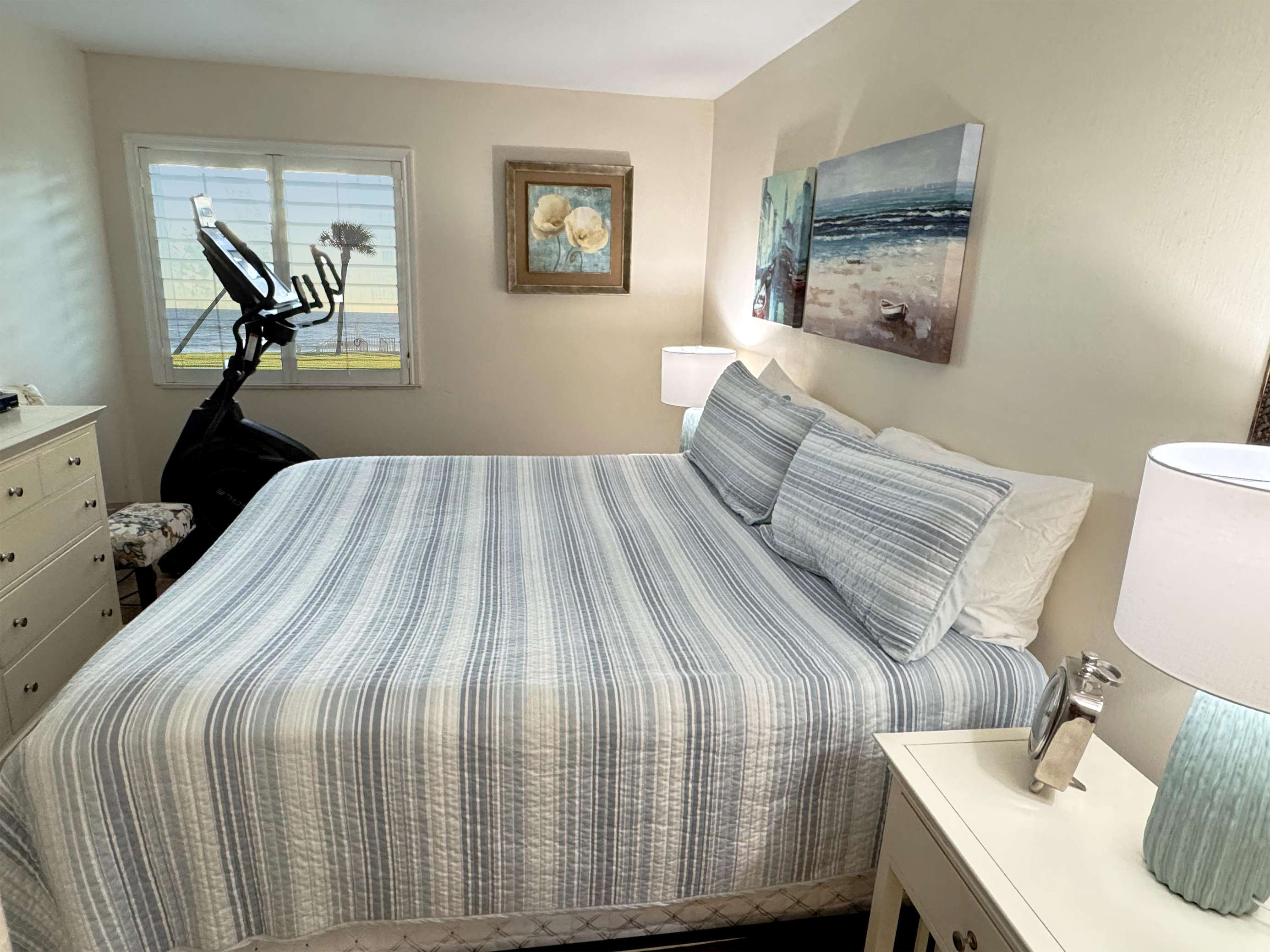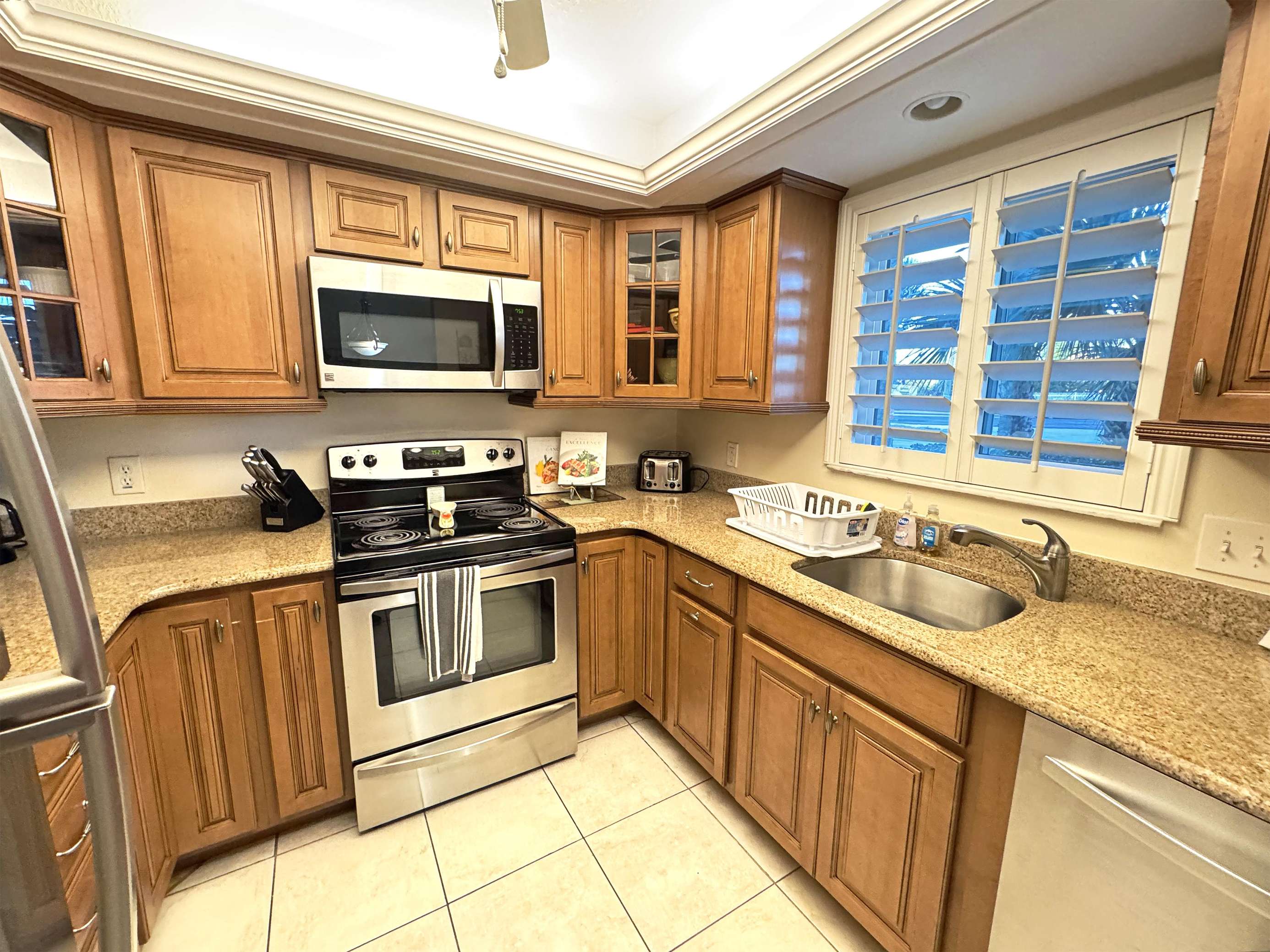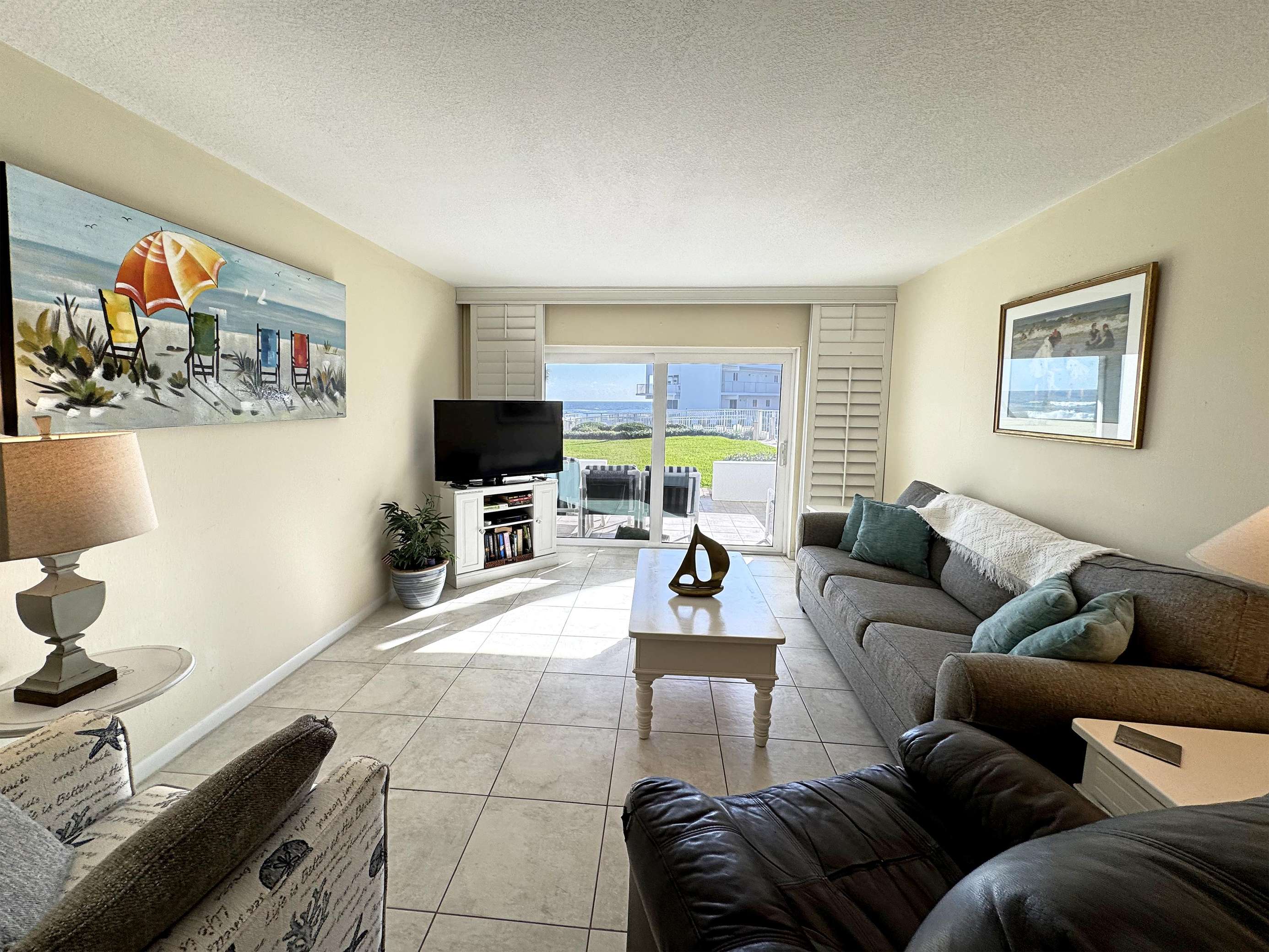 Come enjoy this garden style ground unit. Great views of the pool and ocean. Updated kitchen offers all the necessities of home including granite counter tops and stainless steel appliances. Large dining area and table for family meals or game night. Plenty of seating in the tastefully decorated living room including a recliner to kick back in. Plantation shutters throughout. Master bedroom has a king bed and TV. Master bathroom has a walk in shower. Guest room has 2 twin beds and the guest bathroom has a walk in shower as well. Floors are tile and laminet for easy cleaning. Come relax and enjoy all this condo has to offer!